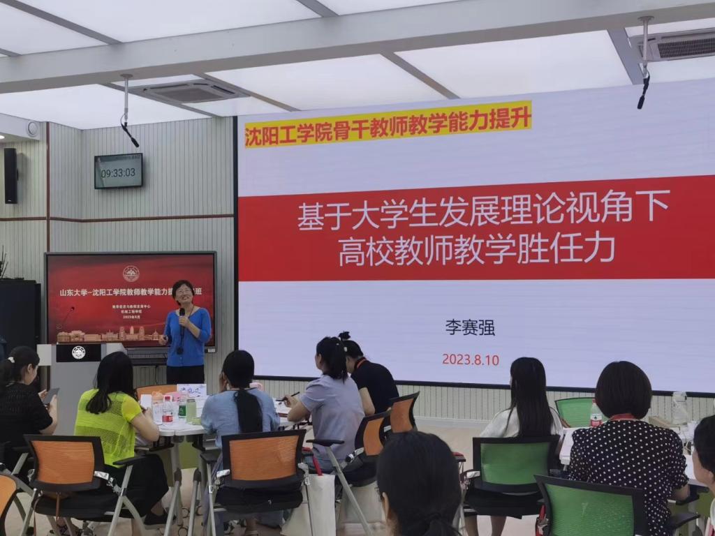 开班仪式后,山东大学李赛强教授基于学生发展理论、围绕高校教师教学胜任力为学员们带来首场讲座,并与参训教师展开深入探讨与交流。