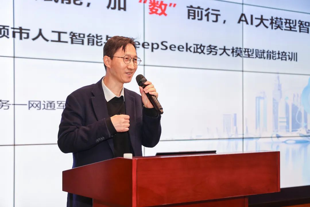 本次培训特邀请华为政务一网通军团AI大模型方案总监钟云智教授担任主讲。重点围绕人工智能的起源和趋势、AI大模型、Deepseek及政务大模型场景、Deepseek案例和应用建议等核心内容,通过生动的现场演示和详实的案例分析,深入剖析了AI技术对提升行政效能的支撑作用,为机关党员干部主动适应数字化变革,以“AI+政务”赋能决策科学化、服务精准化、治理高效化提供了清晰的思路和方法。