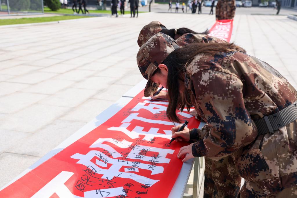 同学们在誓言上写下自己的名字。